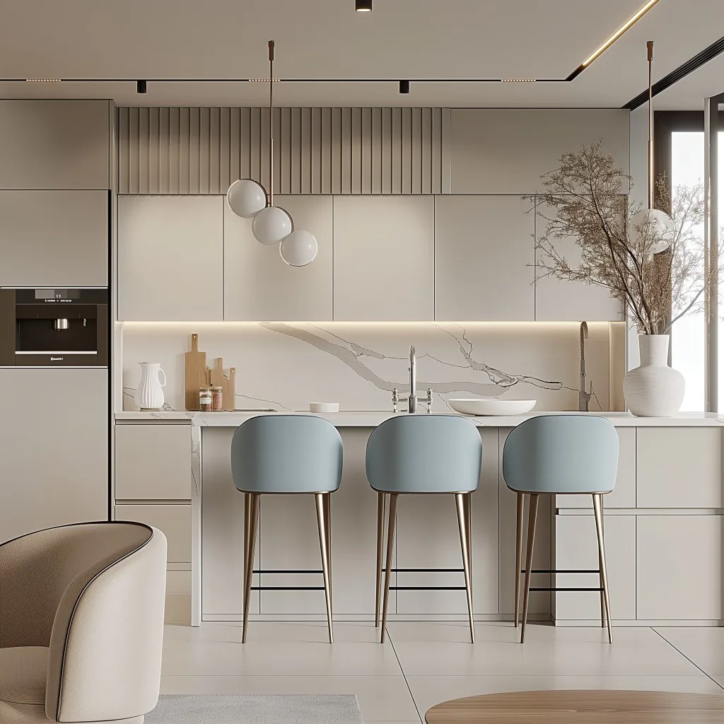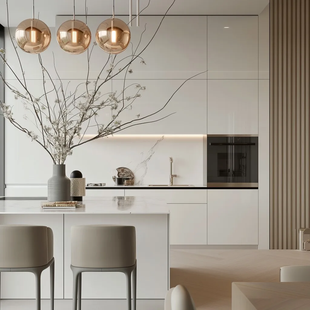 This design style emphasizes simplicity, functionality, and elegance, creating a serene and stylish environment. High-quality materials and minimalist decor further enhance the sense of sophistication and modernity in the space.