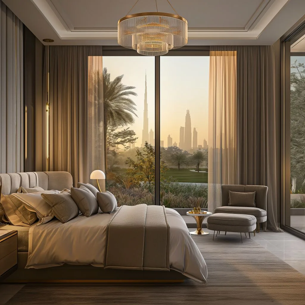 The design style blends the elegance and sophistication of traditional luxury with the clean lines and simplicity of contemporary design, resulting in a space that feels both luxurious and cozy.